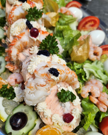Venez savourer notre duo de saumon et langouste façon Bellevue, une alliance parfaite entre la douceur du saumon et la richesse de la langouste.